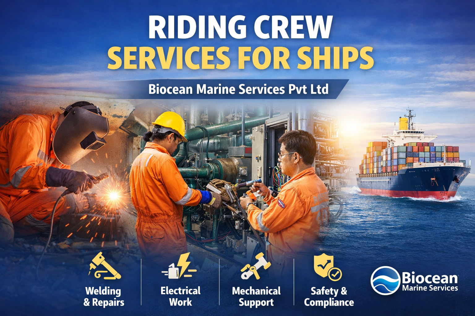 Our riding crew services offer skilled technicians including fitters, welders, and electricians for onboard repair and maintenance. We ensure quick deployment to minimize downtime and maintain vessel efficiency during operations.
